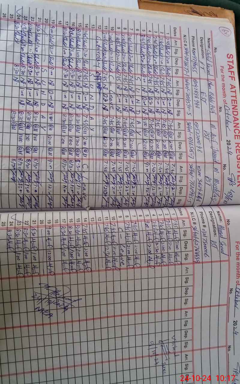 | CNIC | Full Name | Designation | R/C | Absence During Last Calender Month |