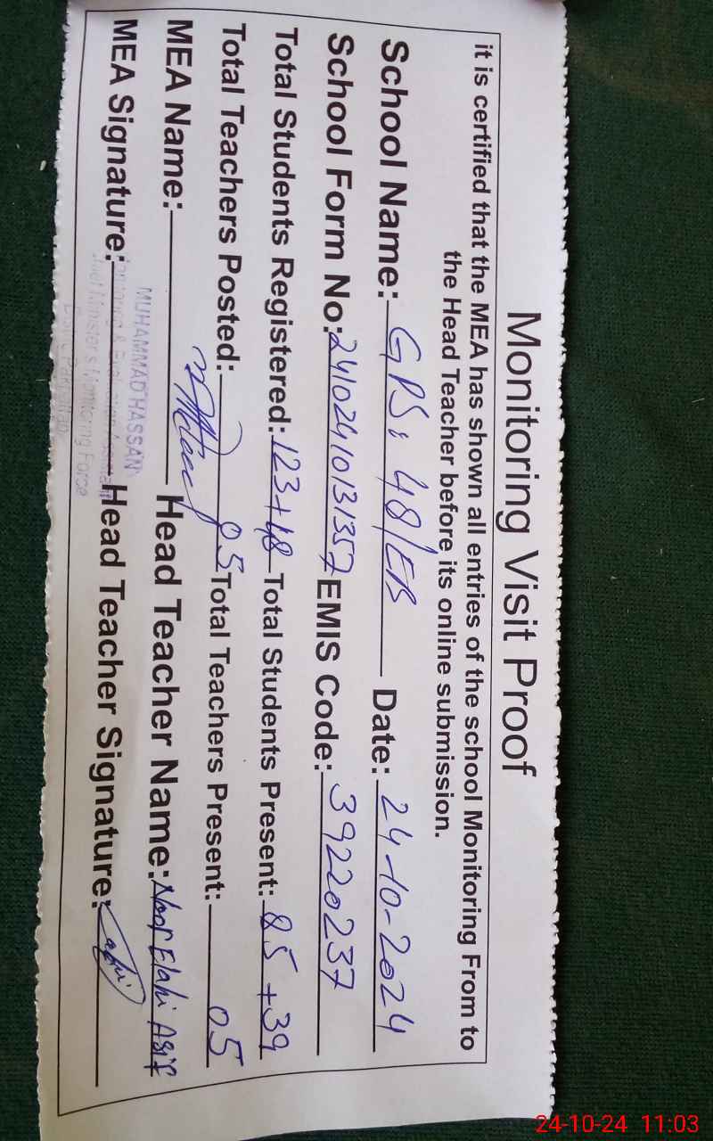 | EMIS Code: 39220237 | Name of School: GPS 48 EB P.O 50 EB ARIF WALA | |||