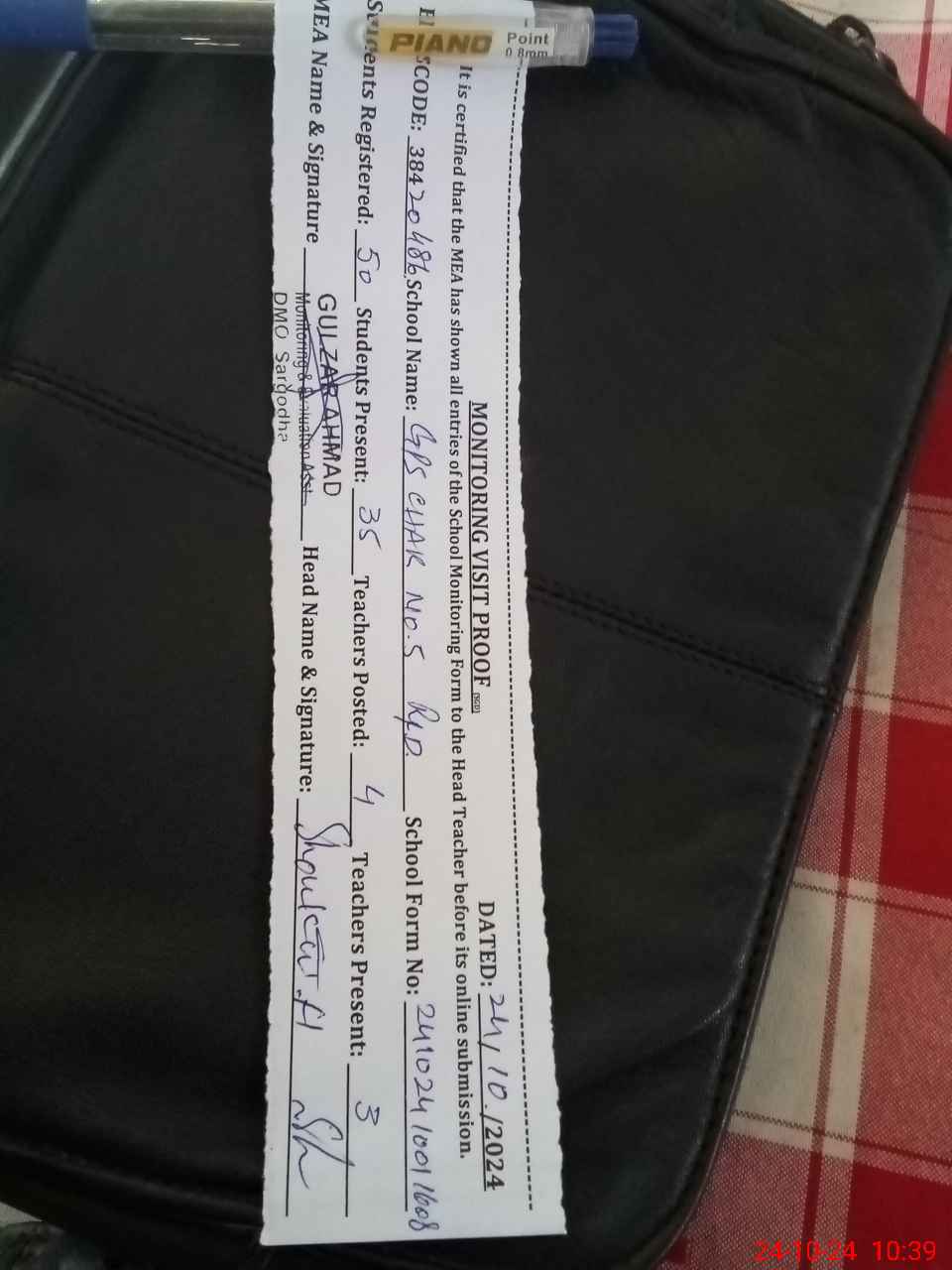 | Attendance Register | Head Teacher | MEA with School | Visit Proof |