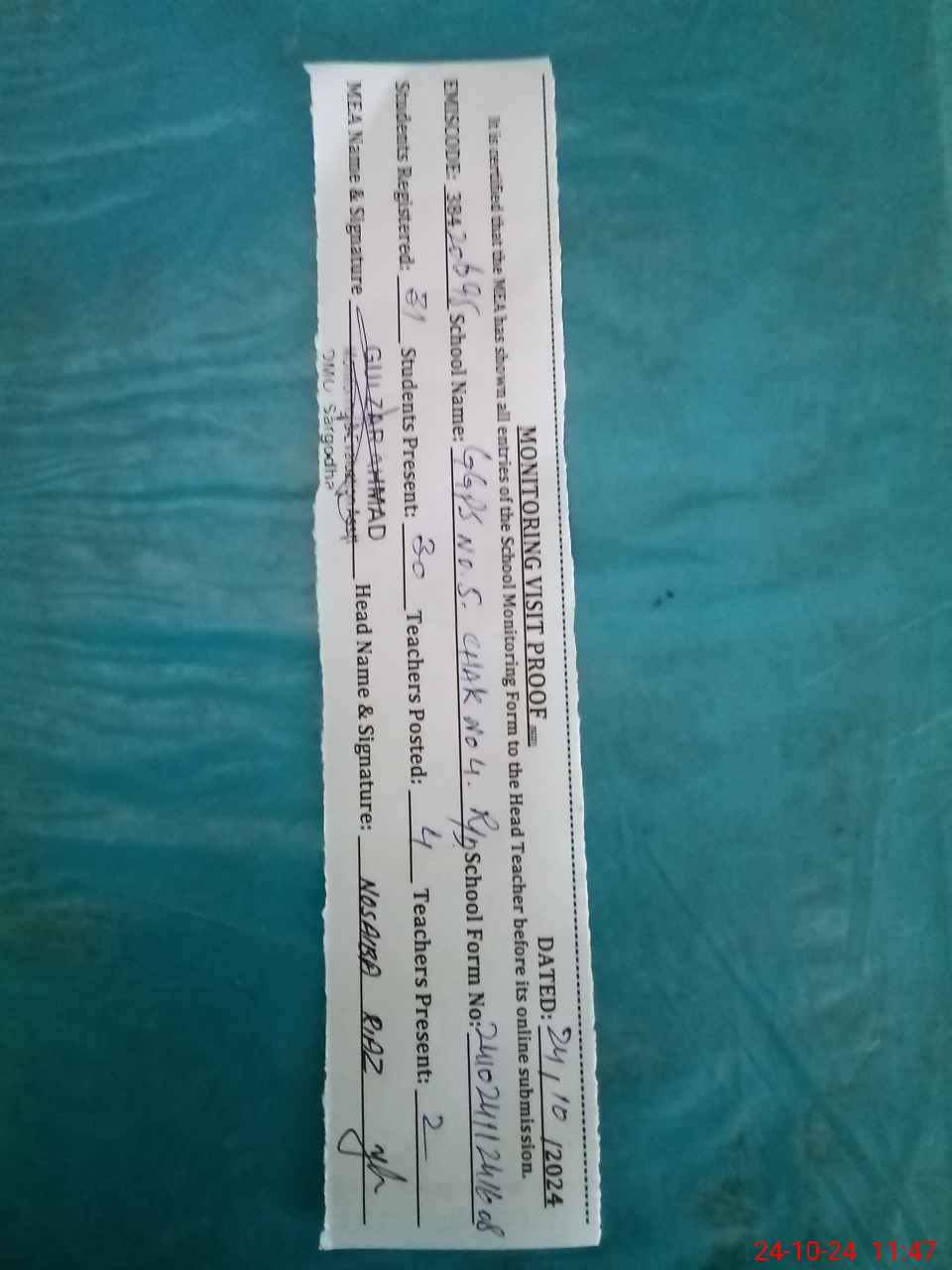 | EMIS Code: 38420695 | Name of School: GGPS NO 5 CHAK NO 4 REMOUNT DEPOT | |||