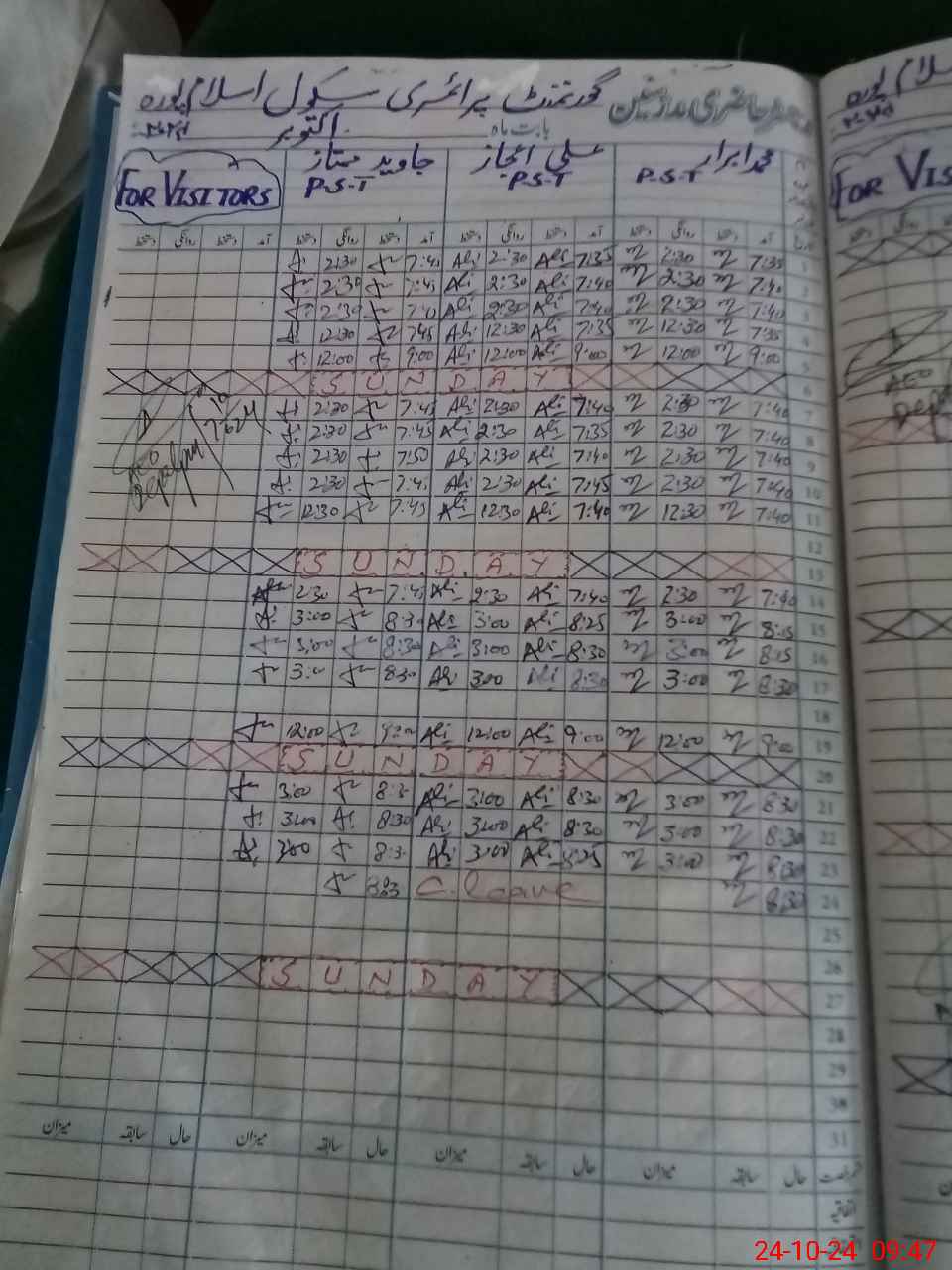 | CNIC | Full Name | Designation | R/C | Absence During Last Calender Month |