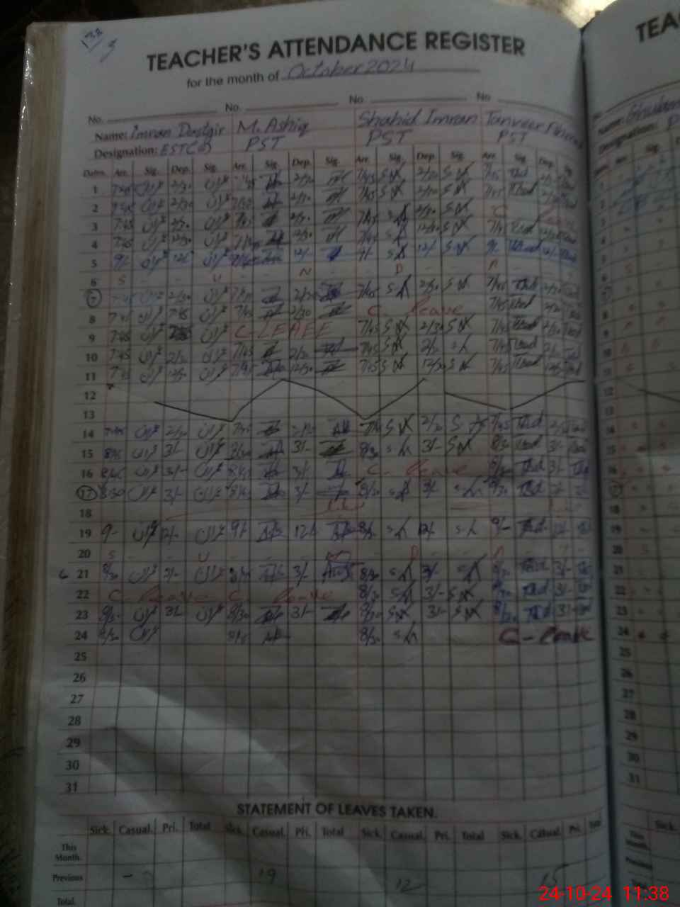 | Leave | Duty | Absent | Maternity | Medical | Ex- Pak |