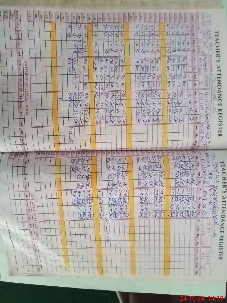 | CNIC | Full Name | Designation | R/C | Absence During Last Calender Month |