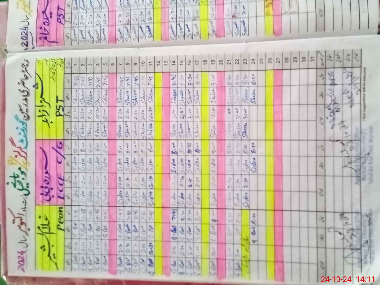 | CNIC | Full Name | Designation | R/C | Absence During Last Calender Month |