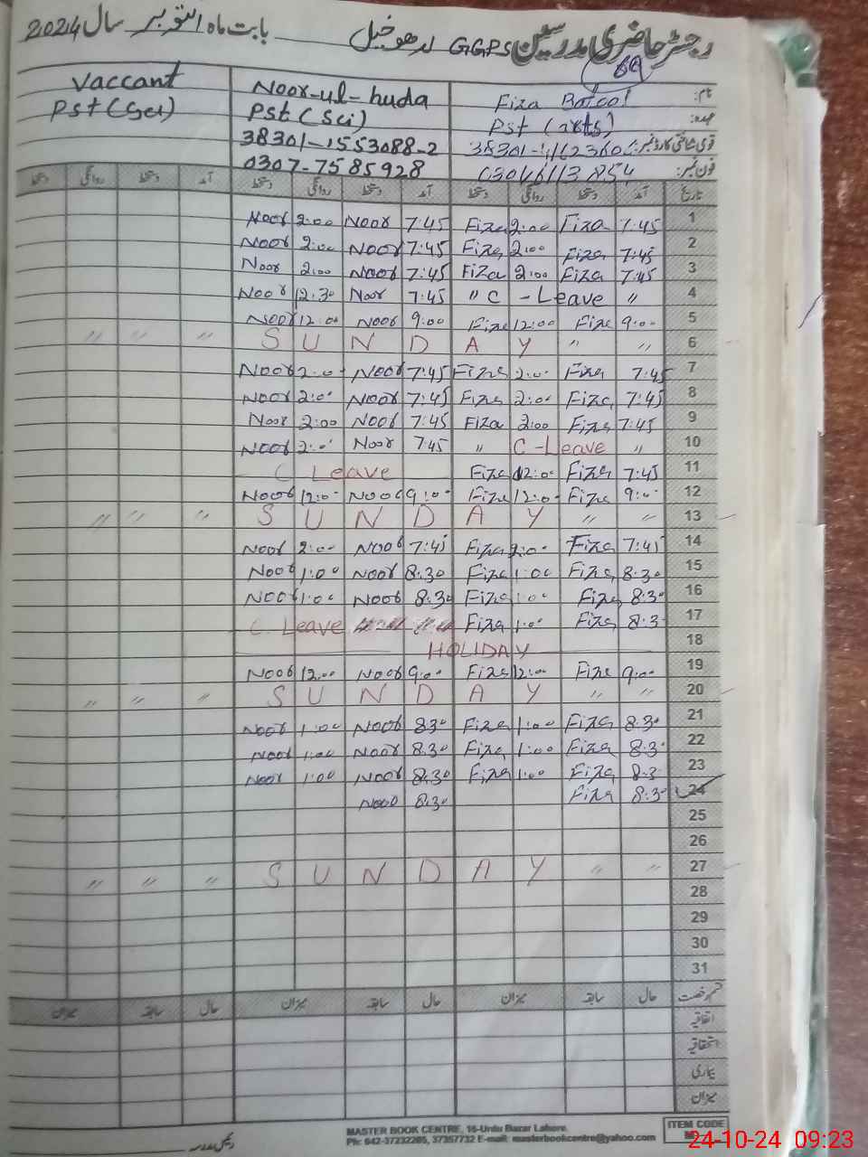 | Name: No**** UlHu**** Designation: (School Headmaster's/Headmistress's) PST Phone/Cell Number: 03**** |