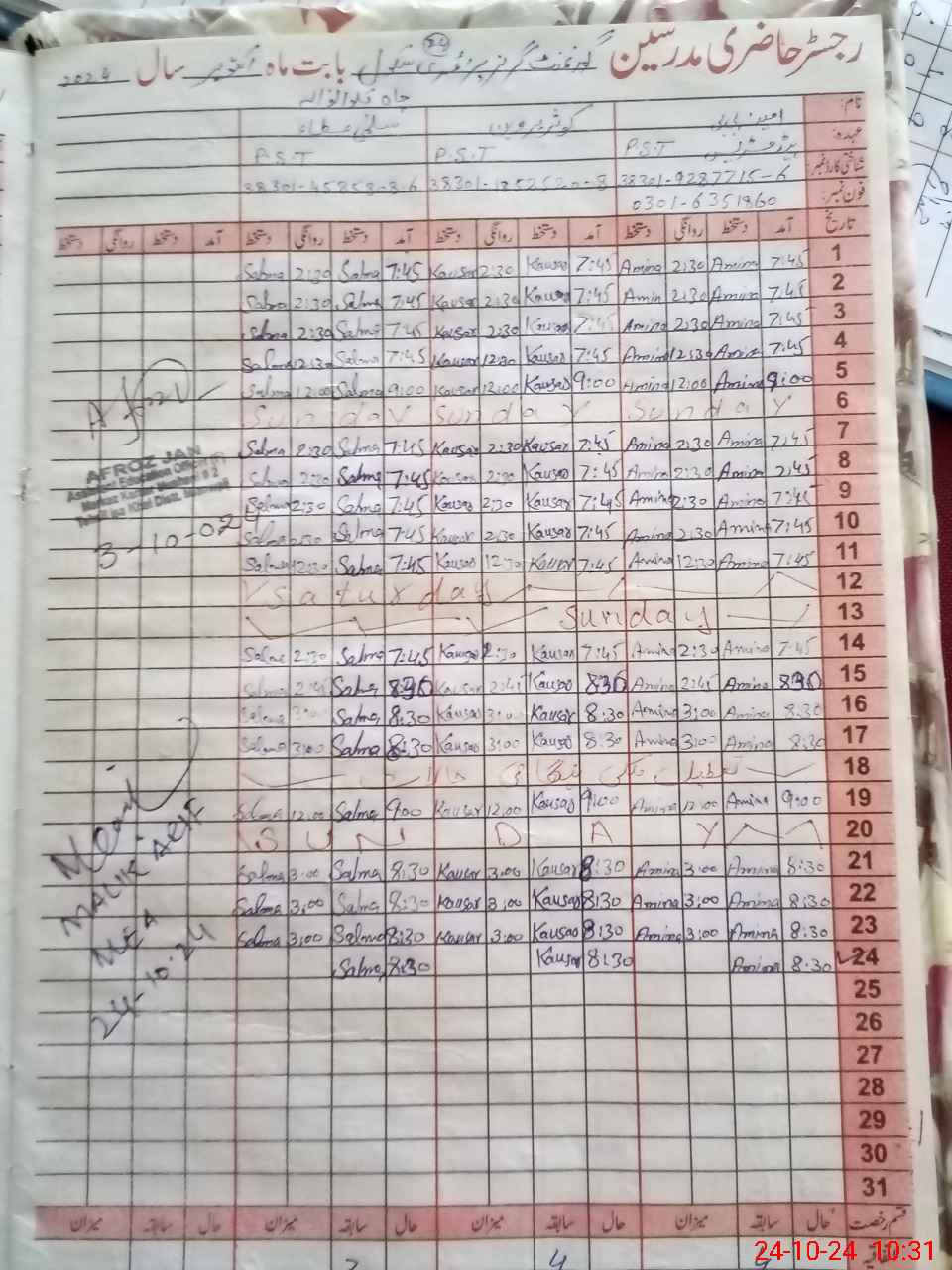| CNIC | Full Name | Designation | R/C | Absence During Last Calender Month |