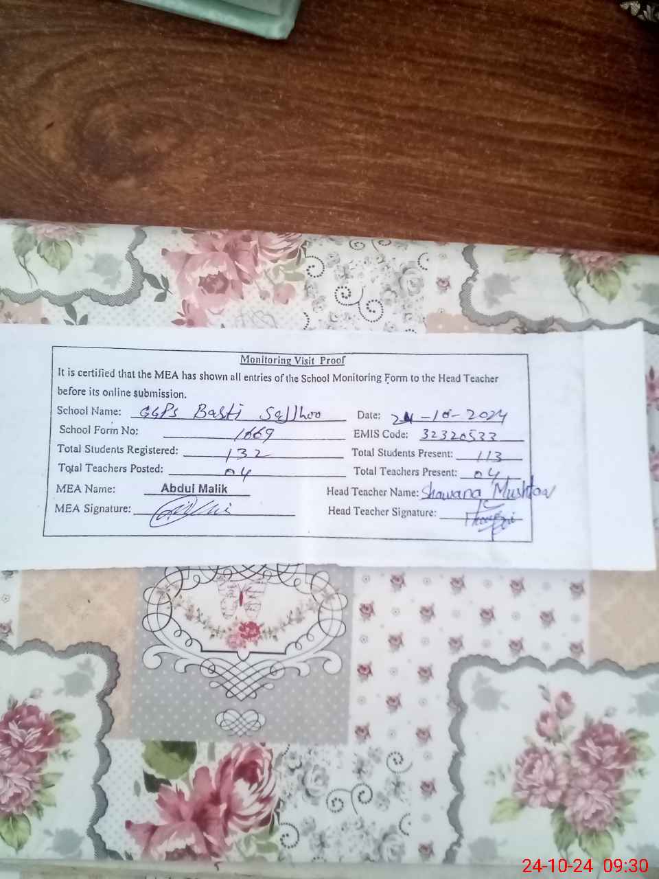 | EMIS Code: 32320533 | Name of School: GGPS BASTI SAJHOO WALA | |||