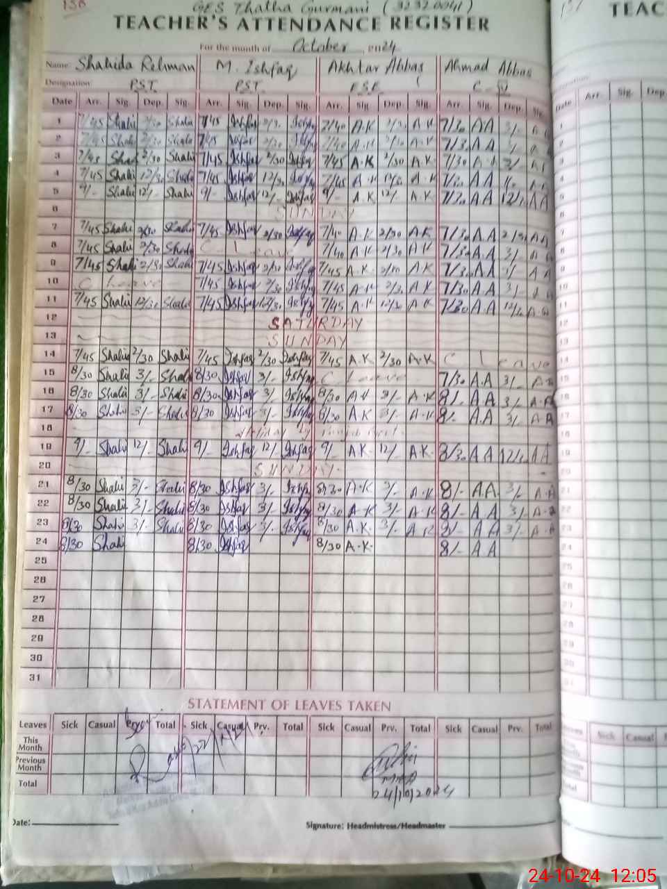 | Name: RI**** HU**** Designation: (School Headmaster's/Headmistress's) S.S.T.(GEN) Phone/Cell Number: 03**** |