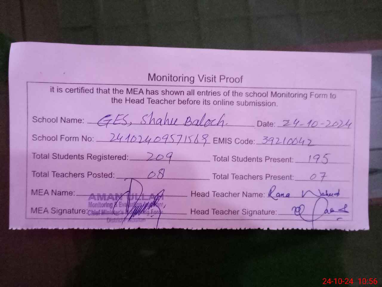 | EMIS Code: 39210042 | Name of School: GES SHAHU BALOUCH PO PAKPATTAN | |||