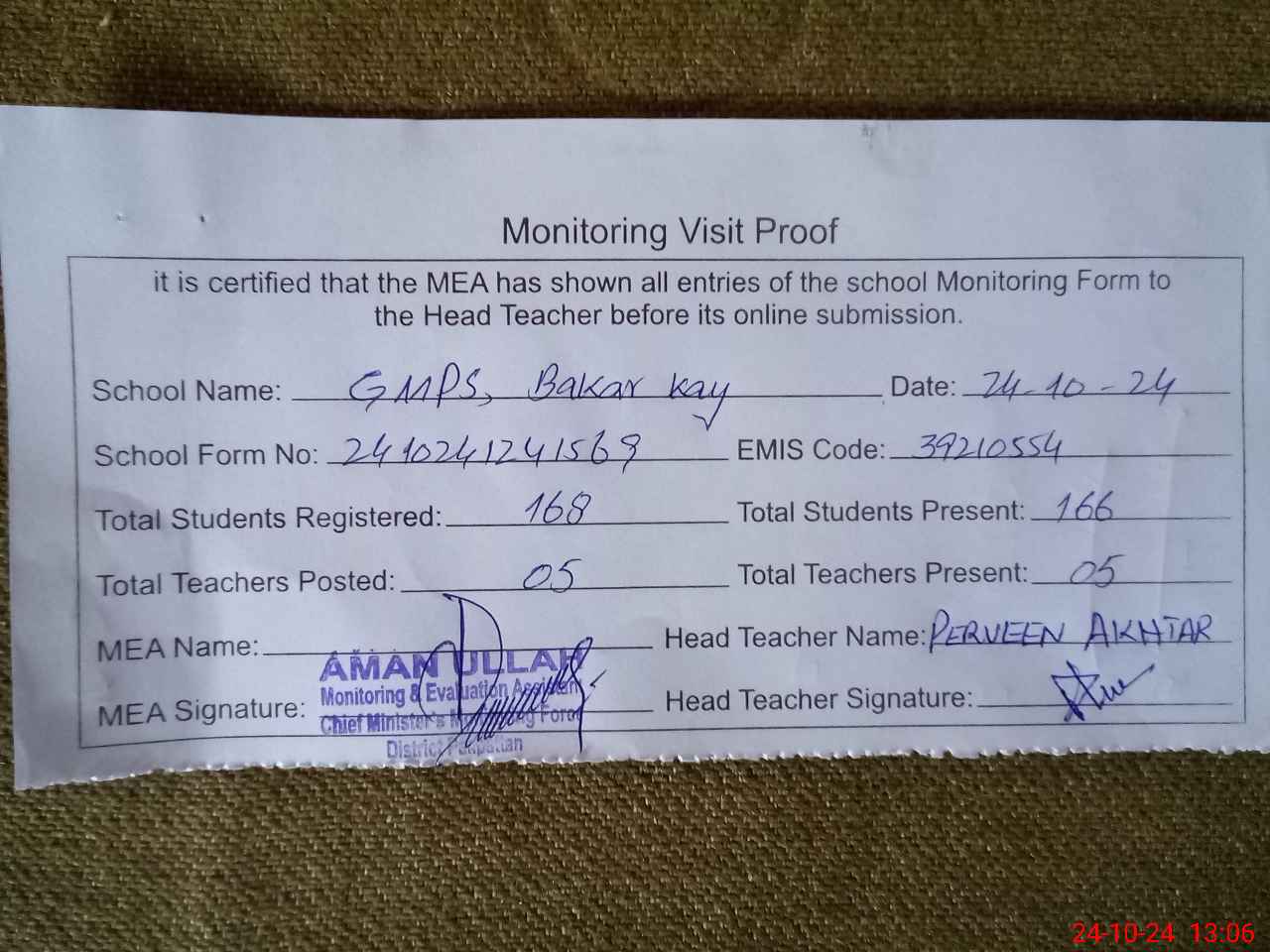 | EMIS Code: 39210554 | Name of School: GMPS BAKAR KAY | |||