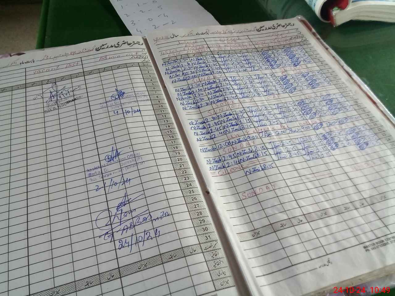 | CNIC | Full Name | Designation | R/C | Absence During Last Calender Month |