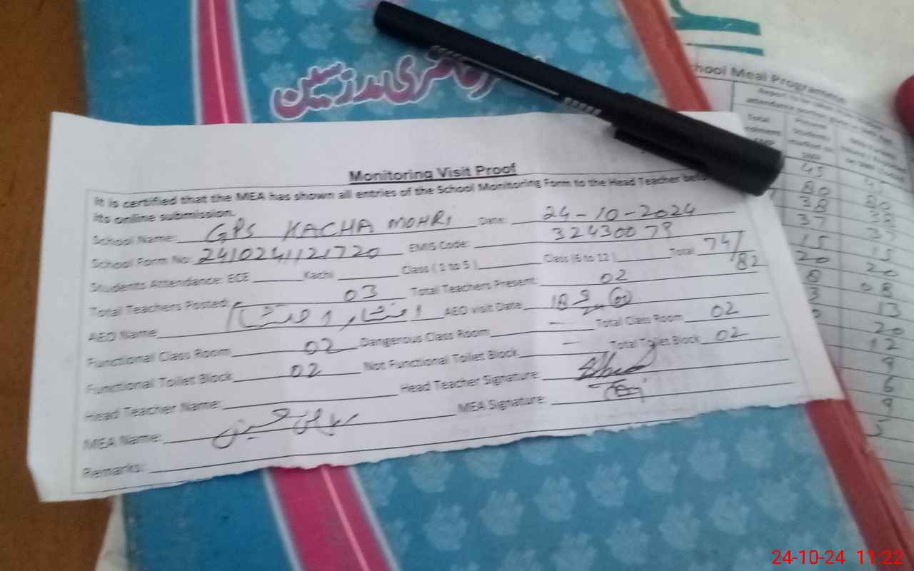 | EMIS Code: 32430079 | Name of School: GPS KACHA MOHRI | |||