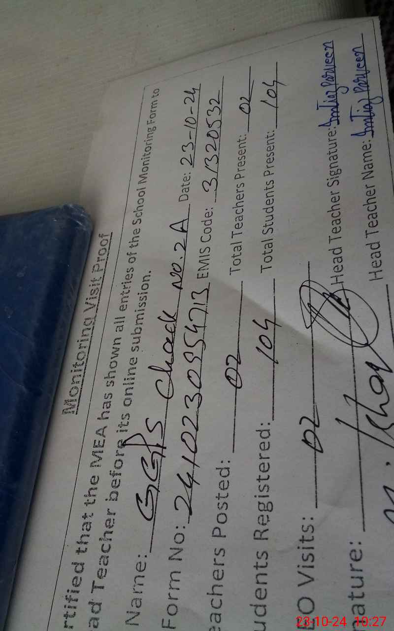 | EMIS Code: 31320532 | Name of School: GGPS CHAK NO.2/A | |||