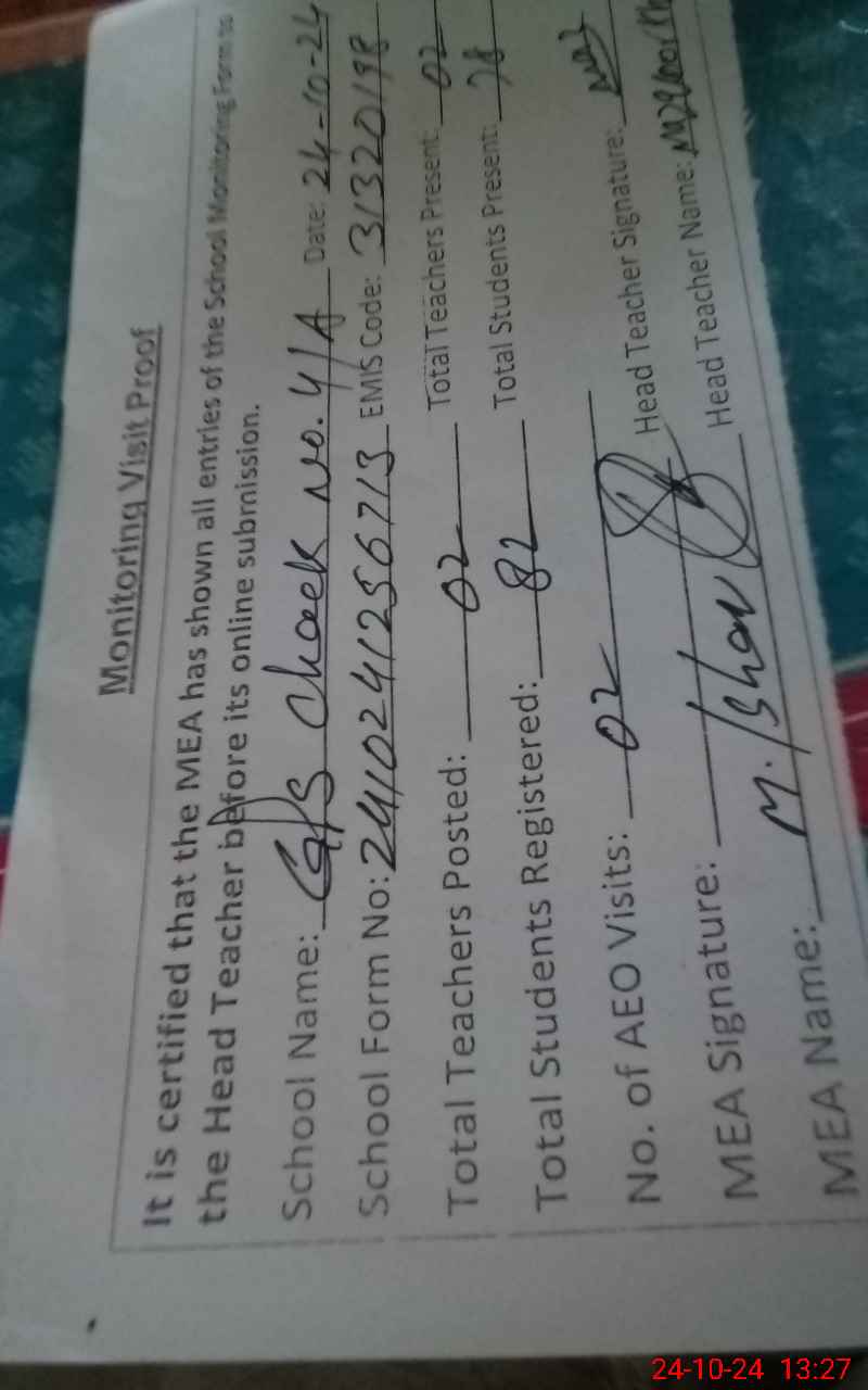 | EMIS Code: 31320198 | Name of School: GPS CHAK 4/A | |||
