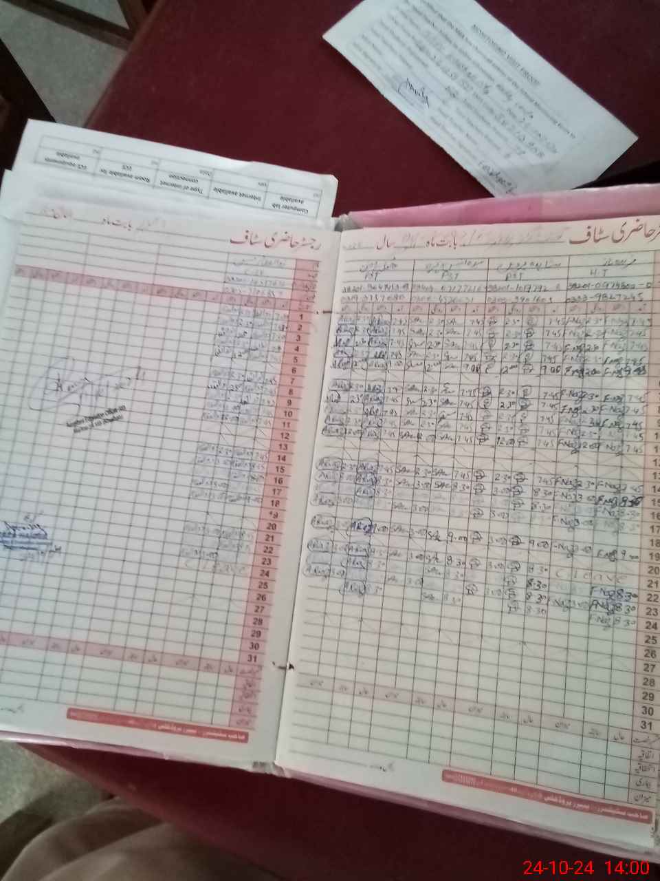 | CNIC | Full Name | Designation | R/C | Absence During Last Calender Month |