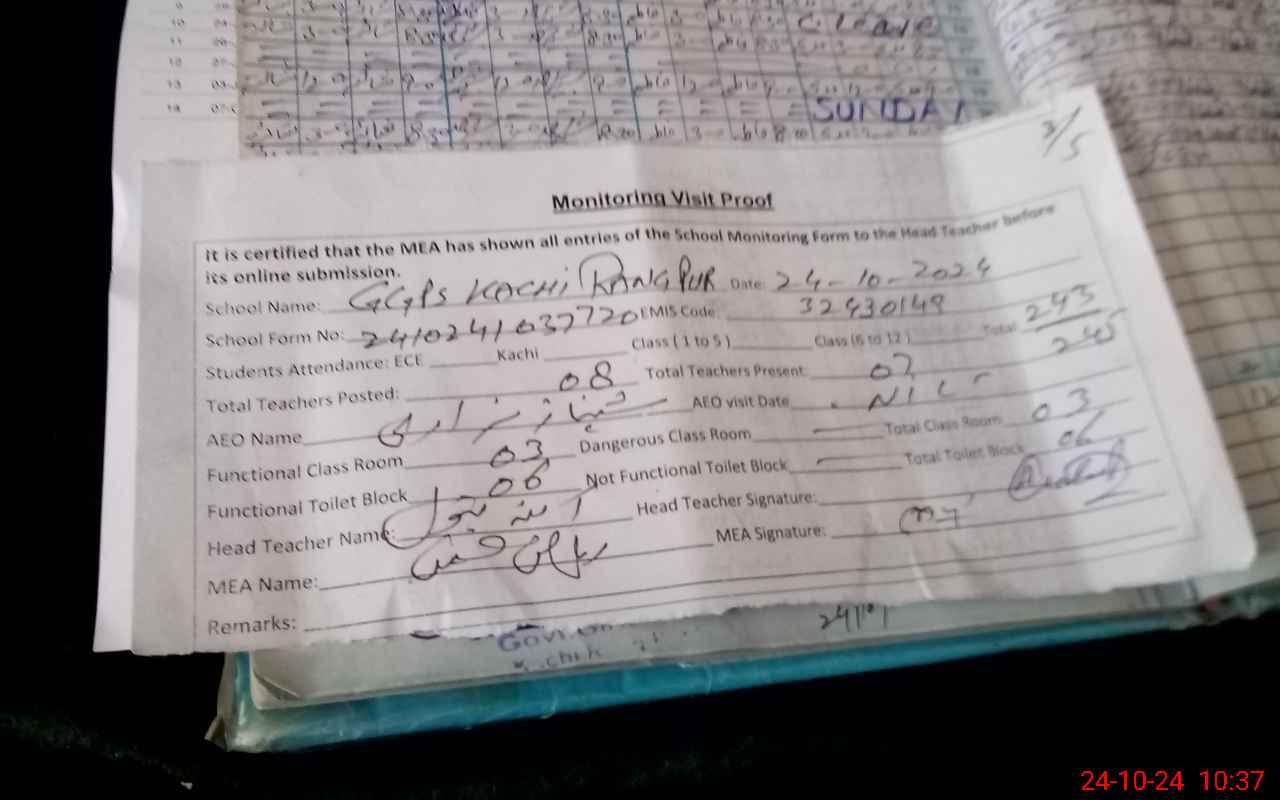 | EMIS Code: 32430149 | Name of School: GGPS KACHI RANG PUR | |||