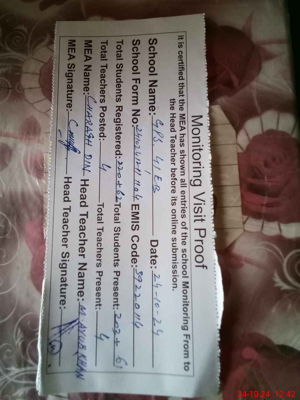 | EMIS Code: 39220114 | Name of School: GPS CHAK NO. 41 EB | |||