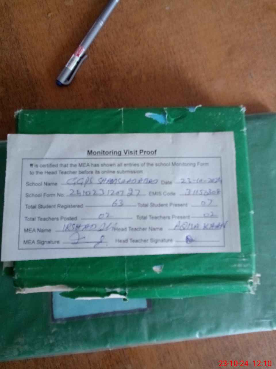 | EMIS Code: 31150308 | Name of School: GGPS SHAMSHAD ABAD | |||