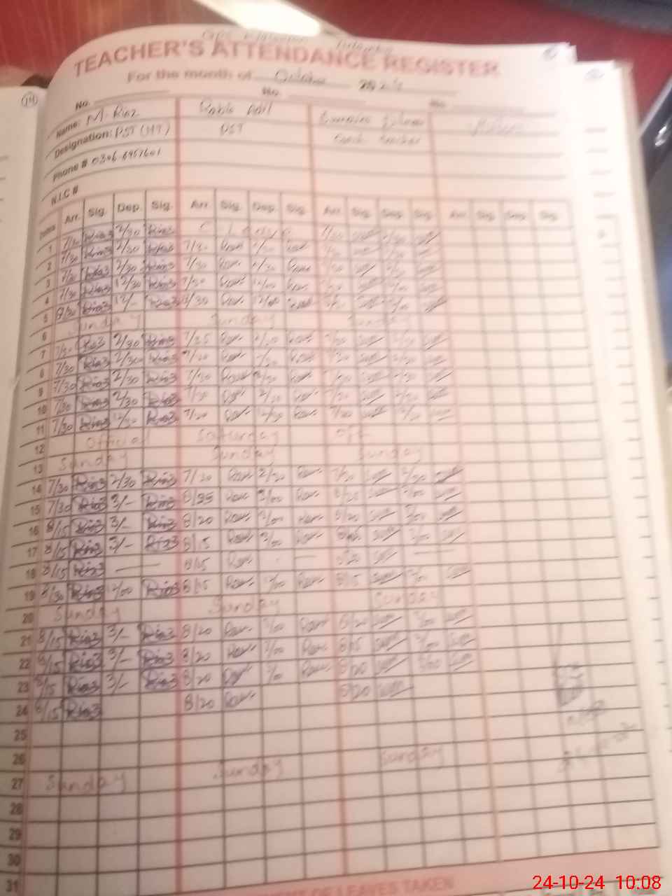 | Name: MU**** RI**** Designation: (School Headmaster's/Headmistress's) PST Phone/Cell Number: 03**** |