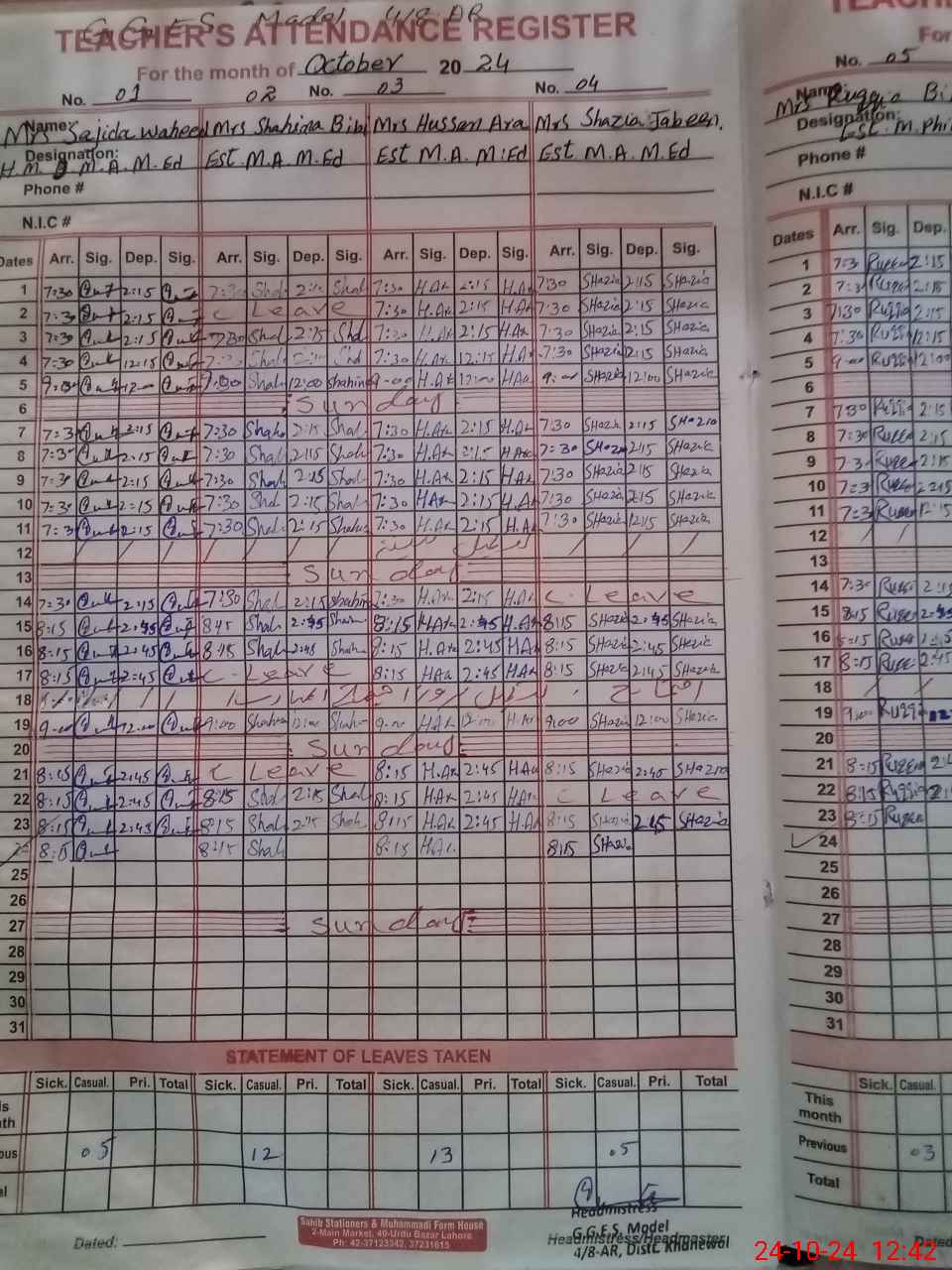 | Leave | Duty | Absent | Maternity | Medical | Ex- Pak |
