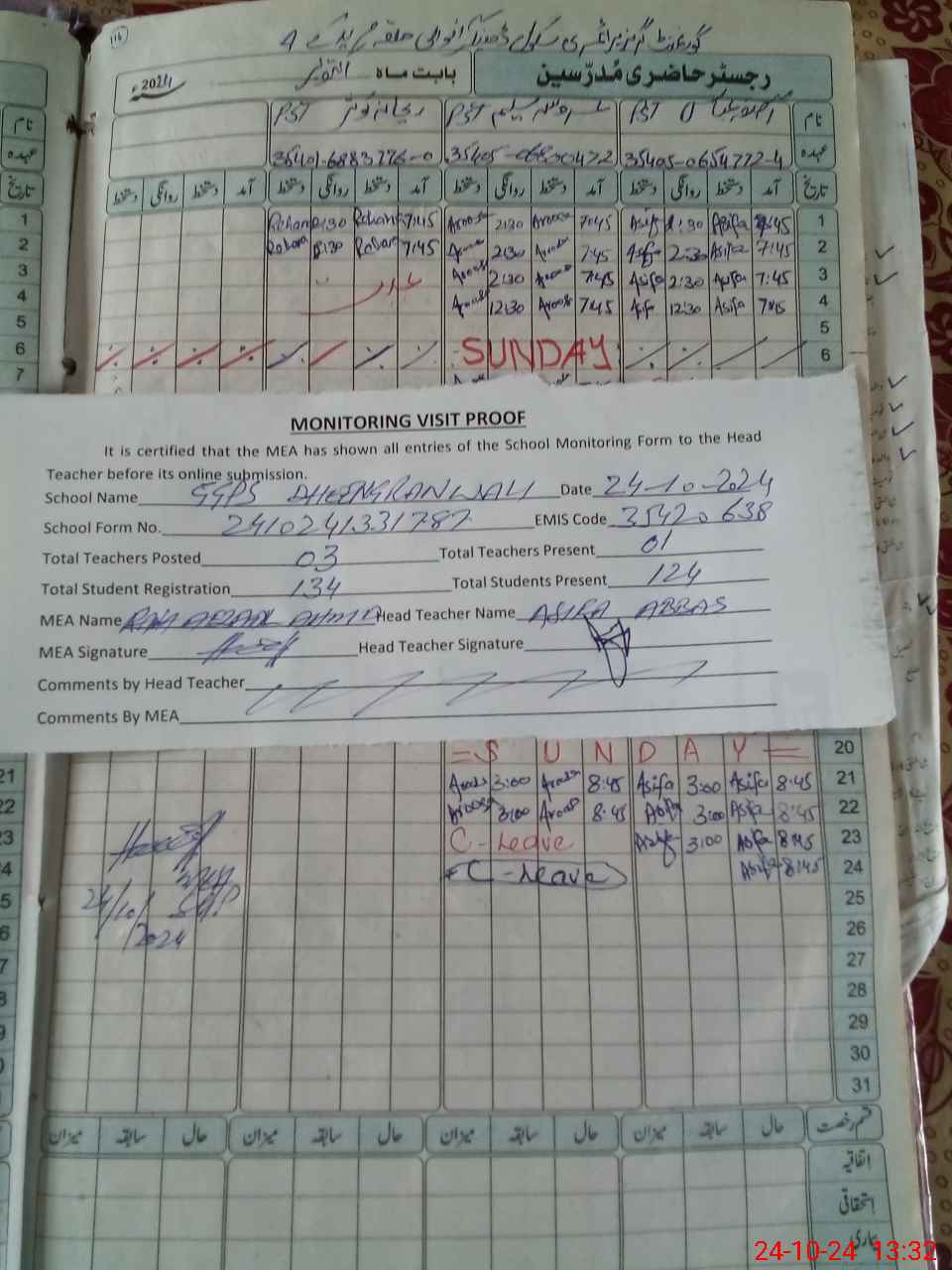 | EMIS Code: 35420638 | Name of School: GGPS DHEENGRAN WALI | |||