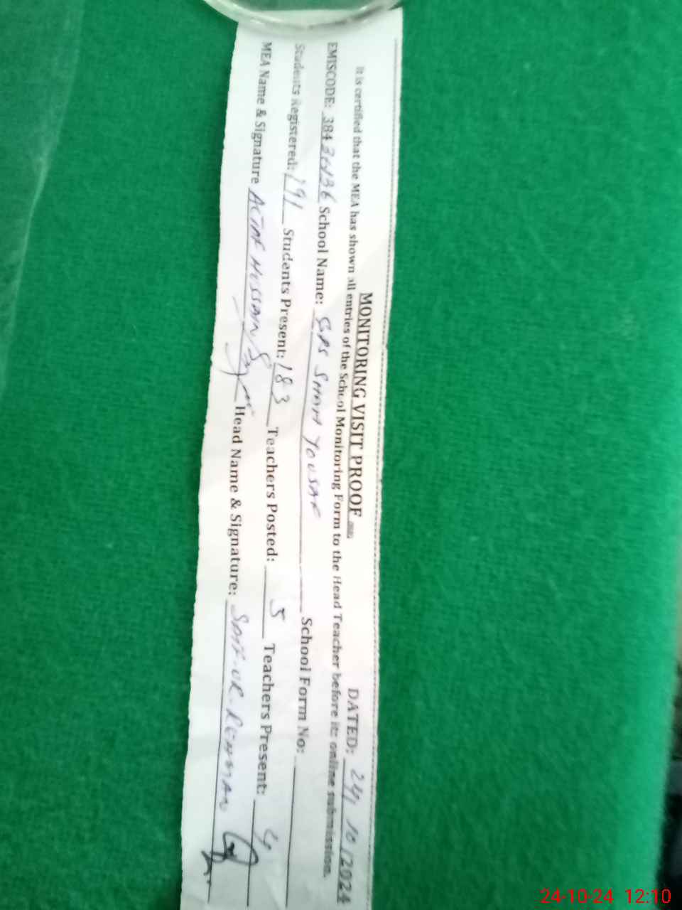 | Certified that this School was Inspected by the Undersigned MEA/DMO Today and the Information Stated Above is as Per Record. | |||||