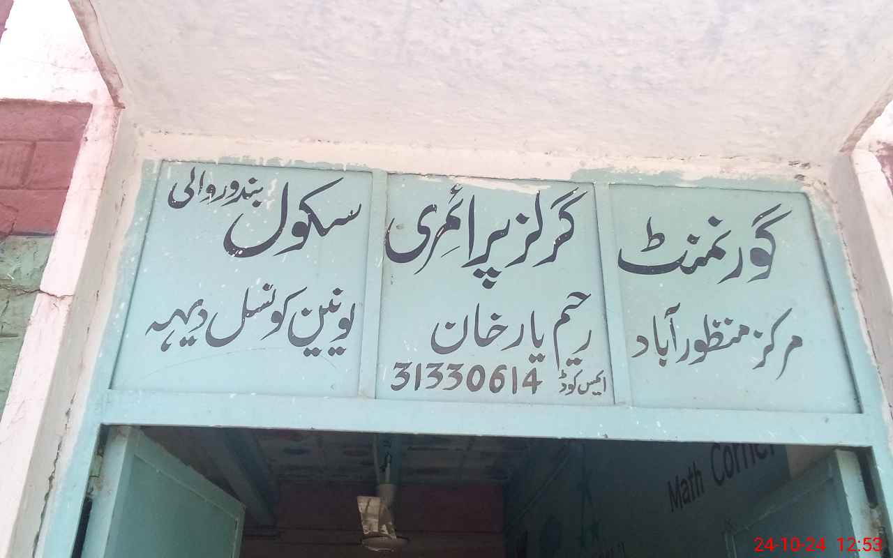 | District: RAHIMYAR KHAN | Tehsil: RAHIMYAR KHAN | Markaz: MANZOOR ABAD-FEMALE | Level: Primary | |