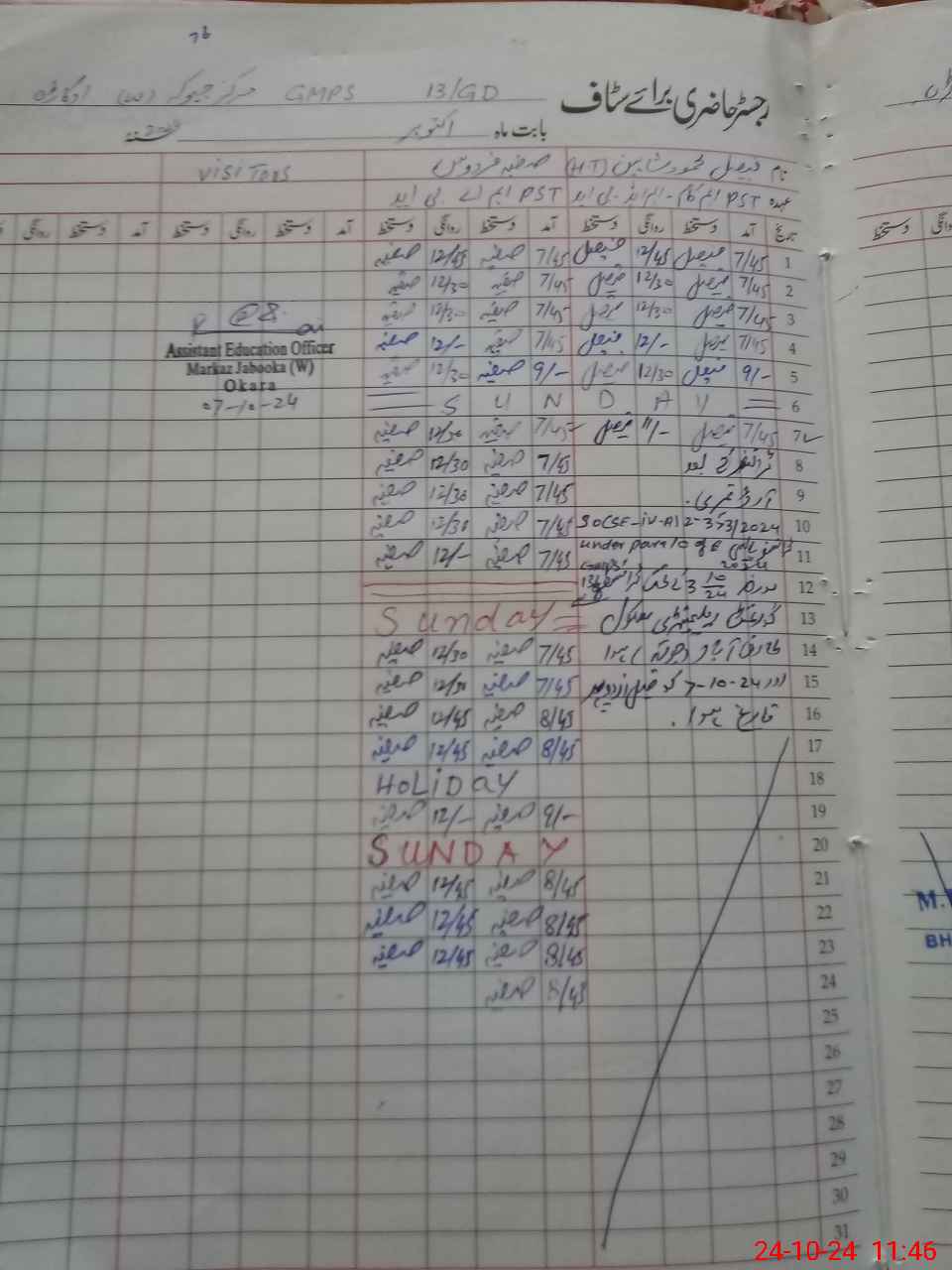 | School Visited by School Health & Nutrition Supervisor (No. of Visits) | 1 | Name1: | Dr Tauqeer | Name2: | |