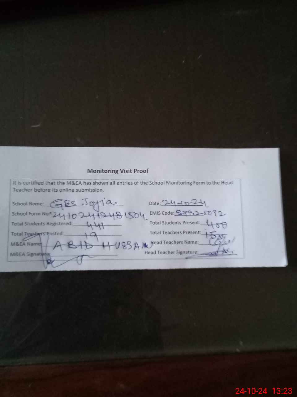 | EMIS Code: 39320092 | Name of School: GHS JOYIA | |||
