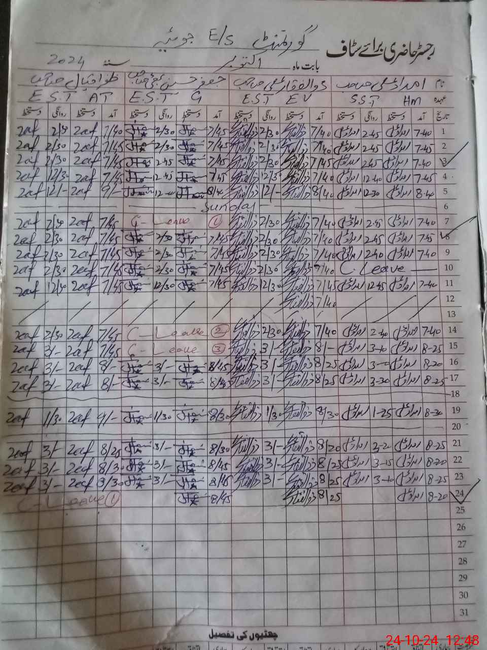 | 35**** | Gh**** Mu**** | 1 | 1 | 0 | 0 | 0 | 0 | 0 | 0 | 0 | 0 | 0 | Exam Duty |
