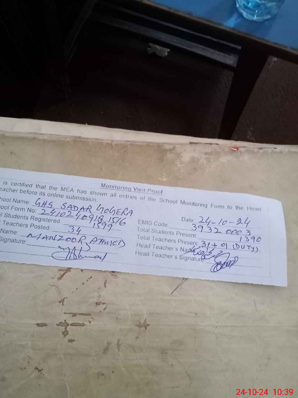 | EMIS Code: 39320003 | Name of School: GHS SADAR GOGERA | |||