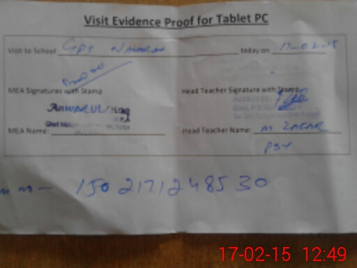 | Attendance Register | Head Teacher | MEA with School | Visit Proof |
