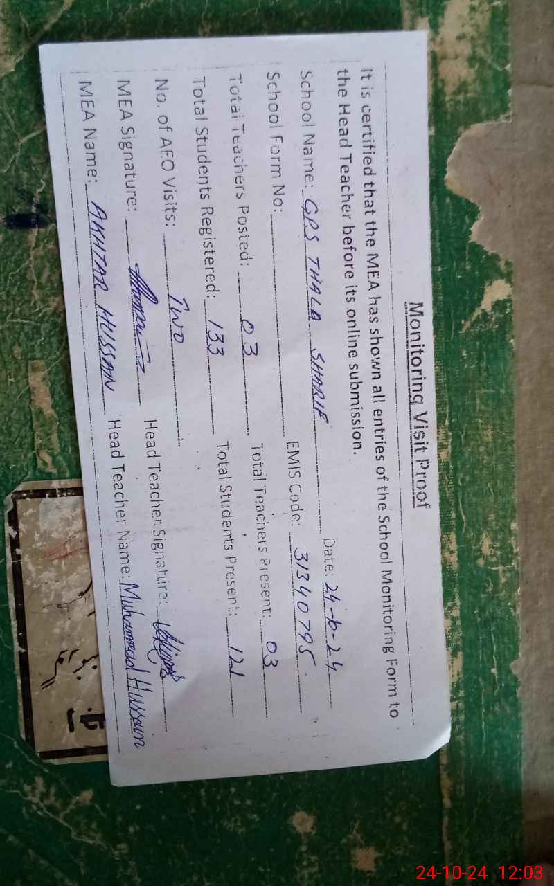 | EMIS Code: 31340795 | Name of School: GPS THALLA SHARIF | |||