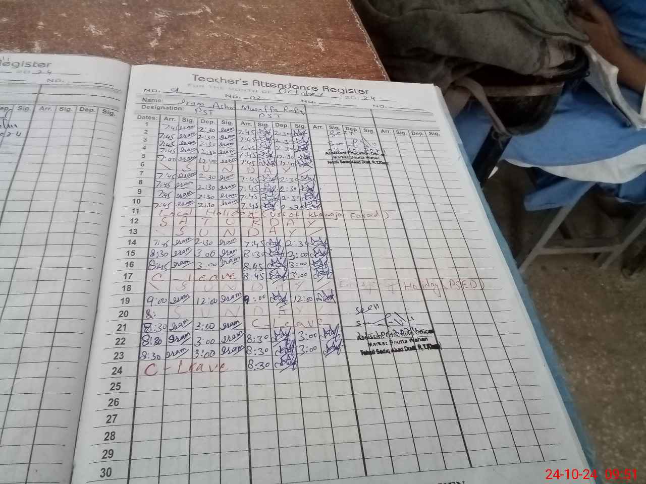 | Name: IR**** AS**** Designation: (School Headmaster's/Headmistress's) PST Phone/Cell Number: 03**** |