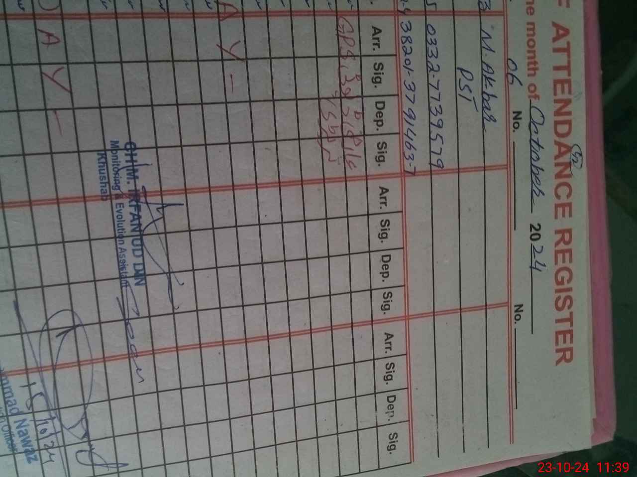 | CNIC | Full Name | Designation | R/C | Absence during last cal. month |