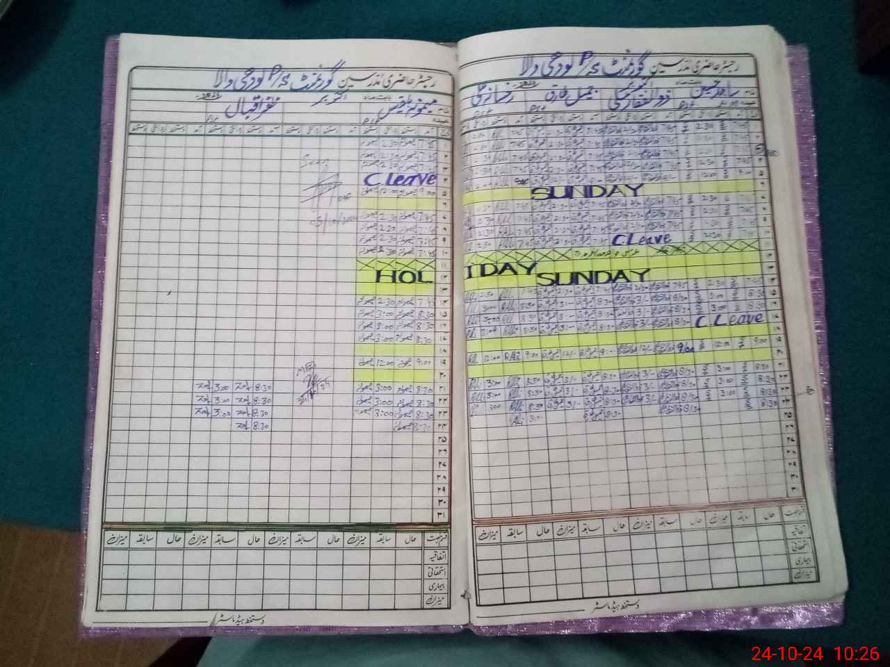 | Leave | Duty | Absent | Maternity | Medical | Ex- Pak |