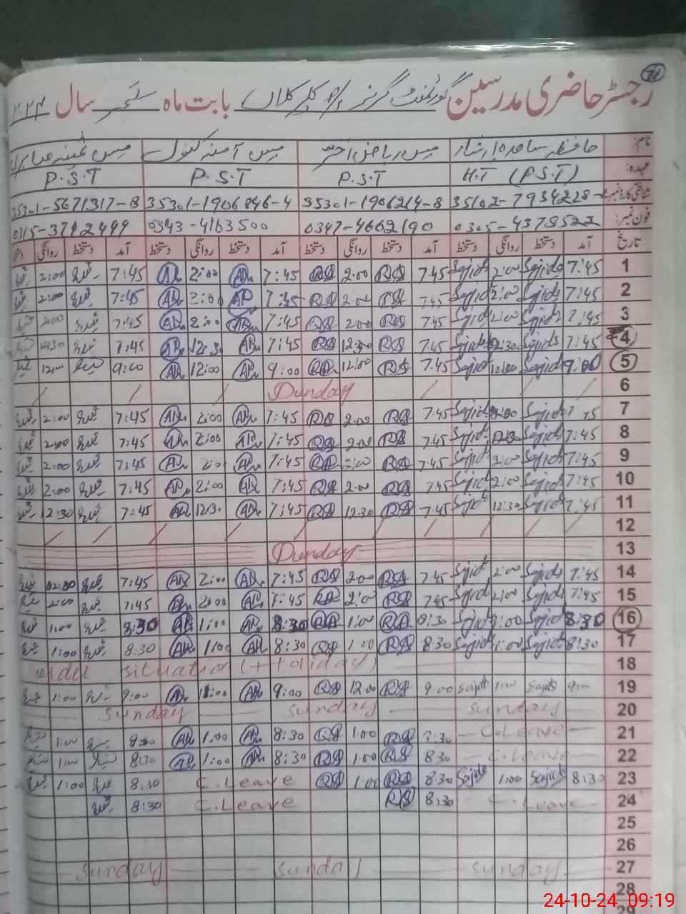 | 35**** | Ha**** Sa**** Ir**** | PST | Regular | 0 | 0 | 0 | 0 | 0 | 0 | 0 | 0 | 0 | Casual |