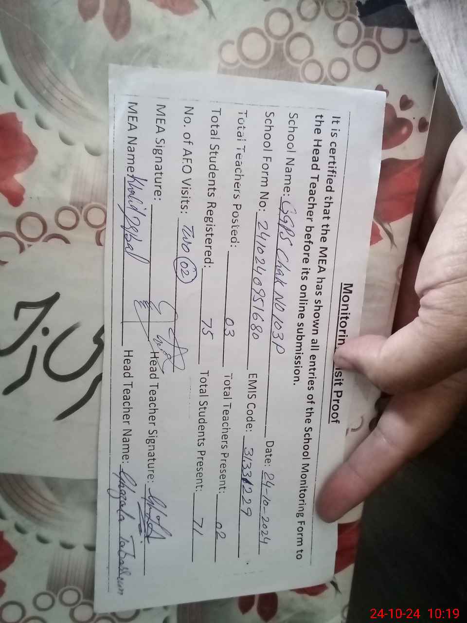 | EMIS Code: 31331229 | Name of School: GGPS CHAK NO. 103/P | |||