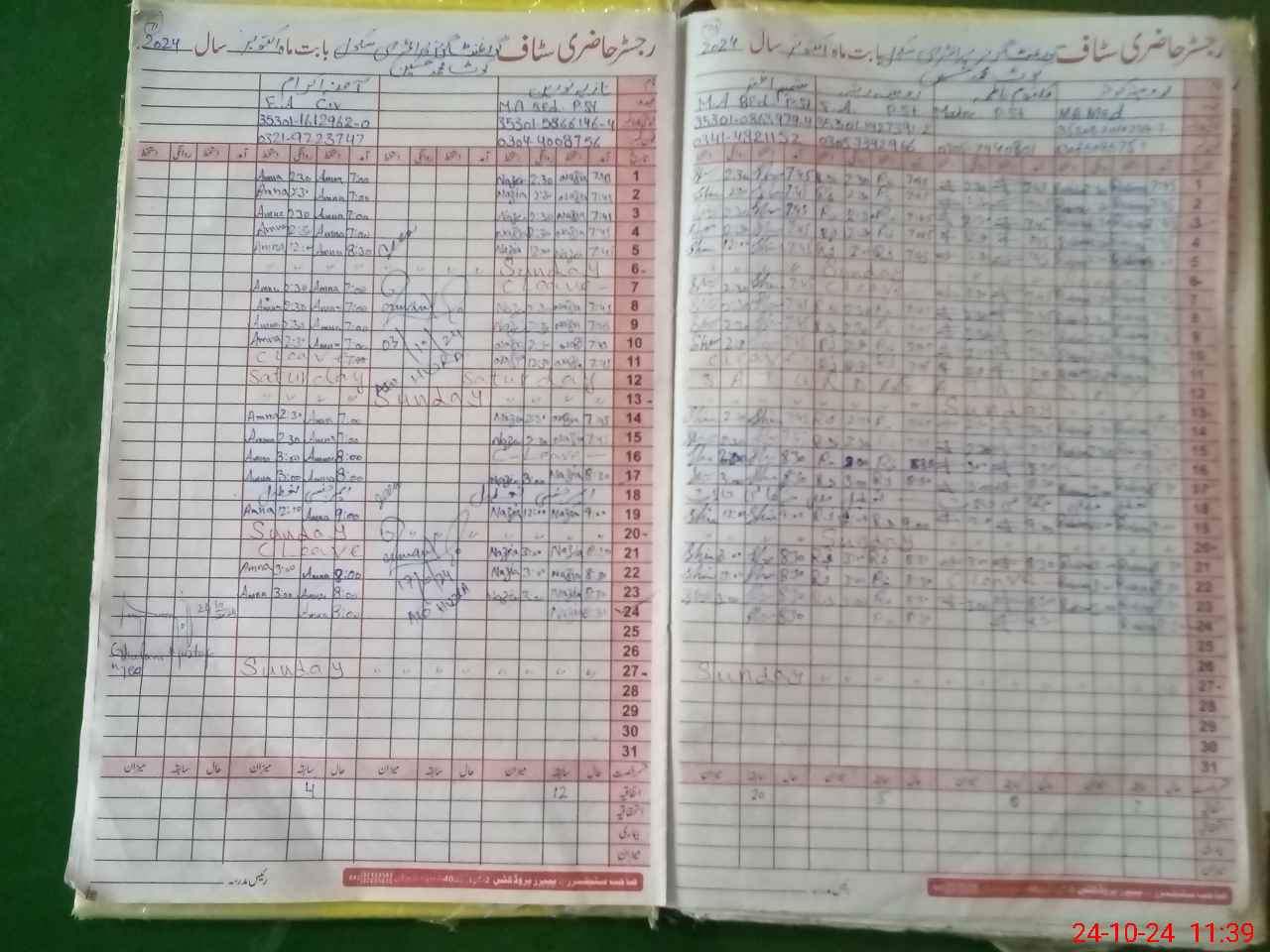| CNIC | Full Name | Designation | R/C | Absence During Last Calender Month |