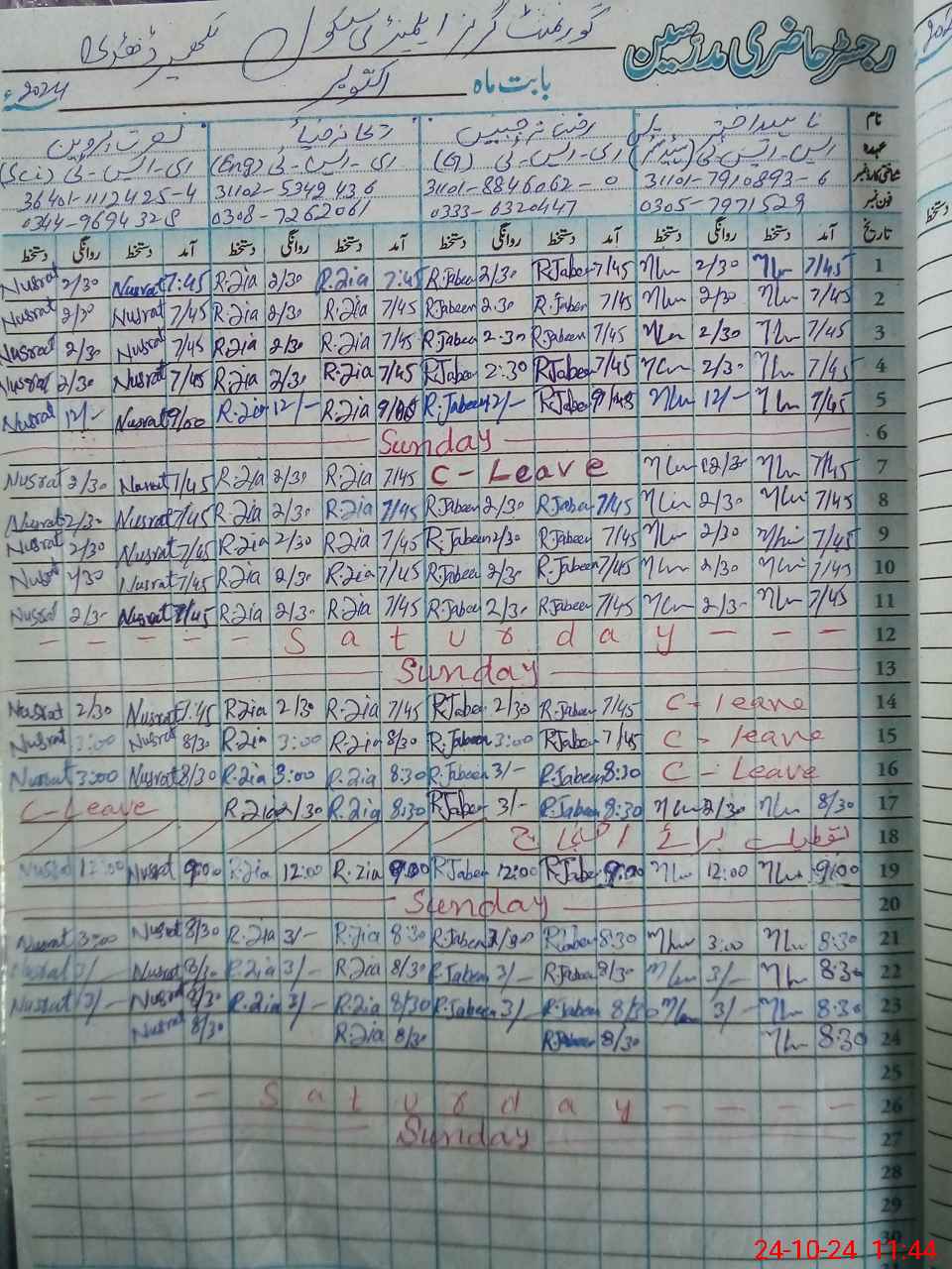 | Name: NA**** AK**** Designation: (School Headmaster's/Headmistress's) SST GENERAL Phone/Cell Number: 03**** |