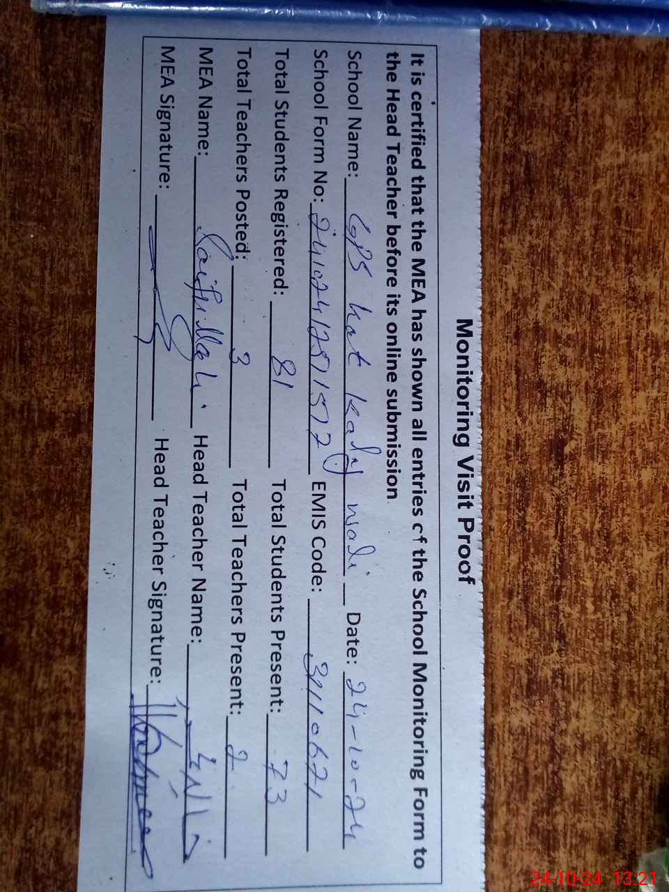 | EMIS Code: 31110671 | Name of School: GPS KAT KALY WALI | |||