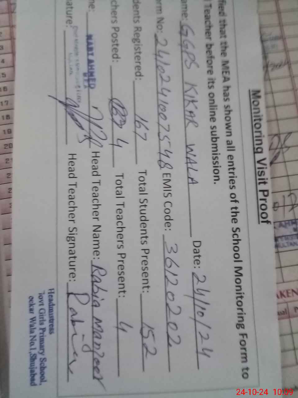 | EMIS Code: 36120202 | Name of School: GGPS KIKAR WALA BASTI KARIM ABAD | |||