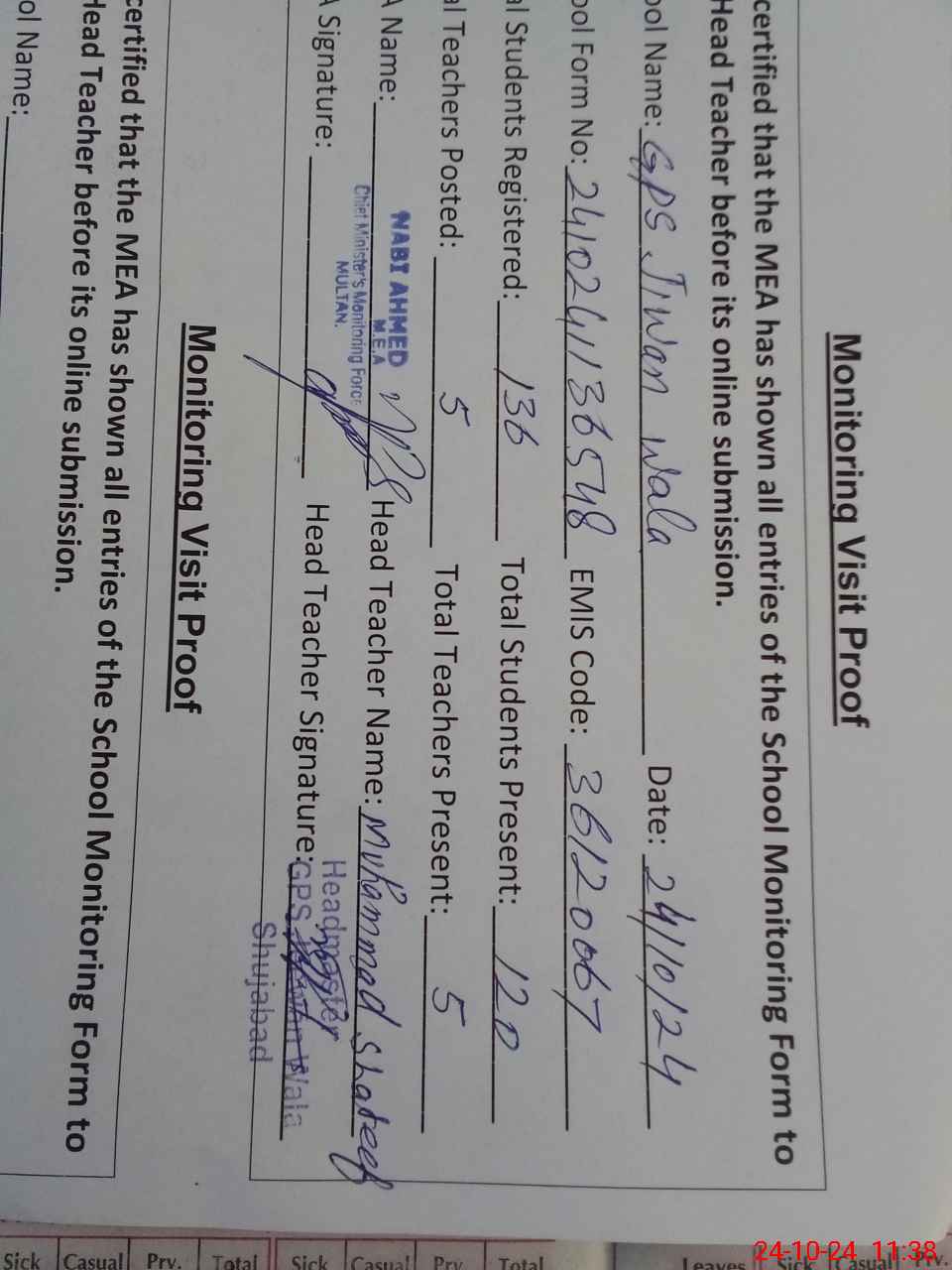 | EMIS Code: 36120067 | Name of School: GPS JIWAN WALA P/O SHUJABAD | |||