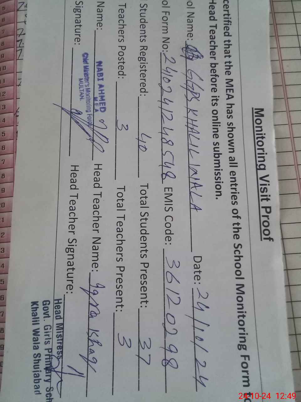 | EMIS Code: 36120298 | Name of School: GGPS KHALIL WALA NEAR TV BOOSTER SHUJABAD | |||