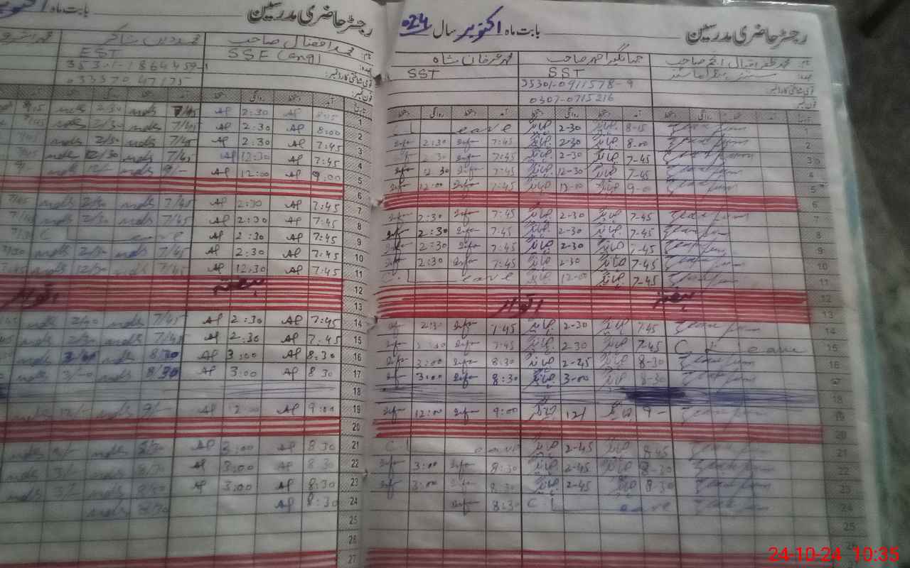 | CNIC | Full Name | Designation | R/C | Absence During Last Calender Month |