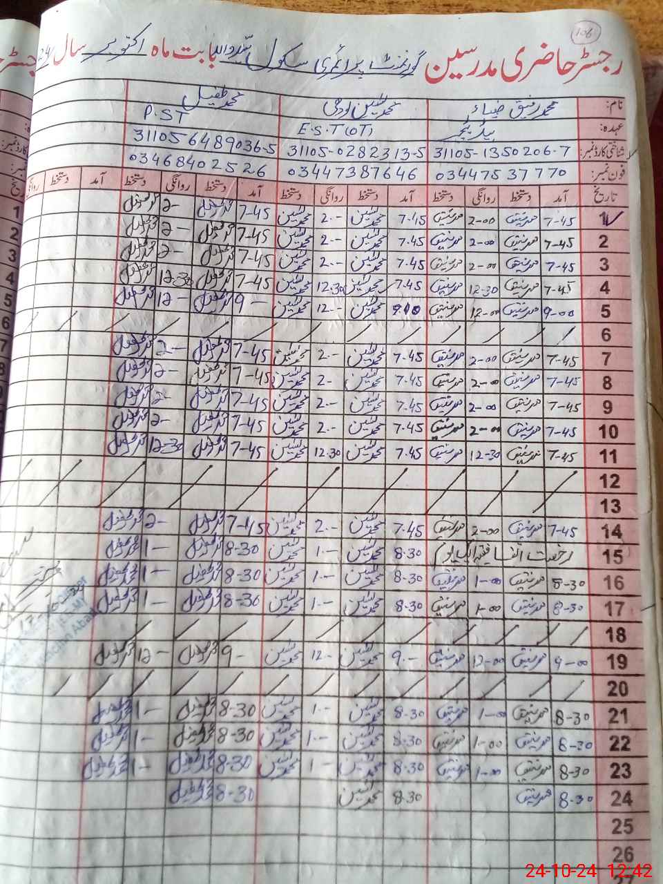 | Name: MU**** Ta**** Designation: (School Headmaster's/Headmistress's) P S T Phone/Cell Number: 03**** |