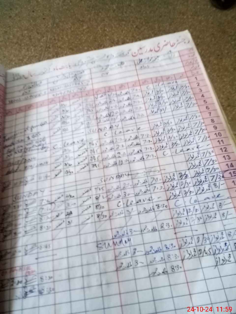 | CNIC | Full Name | Designation | R/C | Absence During Last Calender Month |