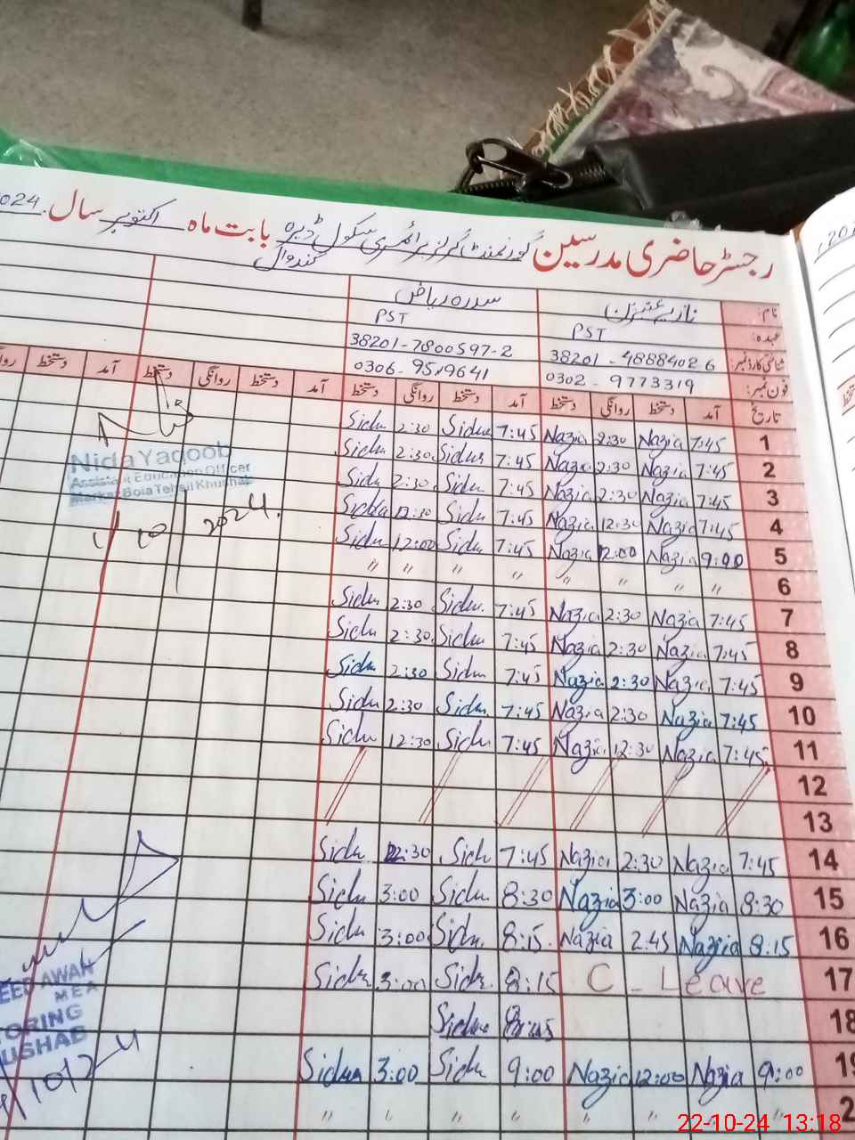 | Name: Si**** Ri**** Designation: (School Headmaster's/Headmistress's) PST Phone/Cell Number: 03**** |