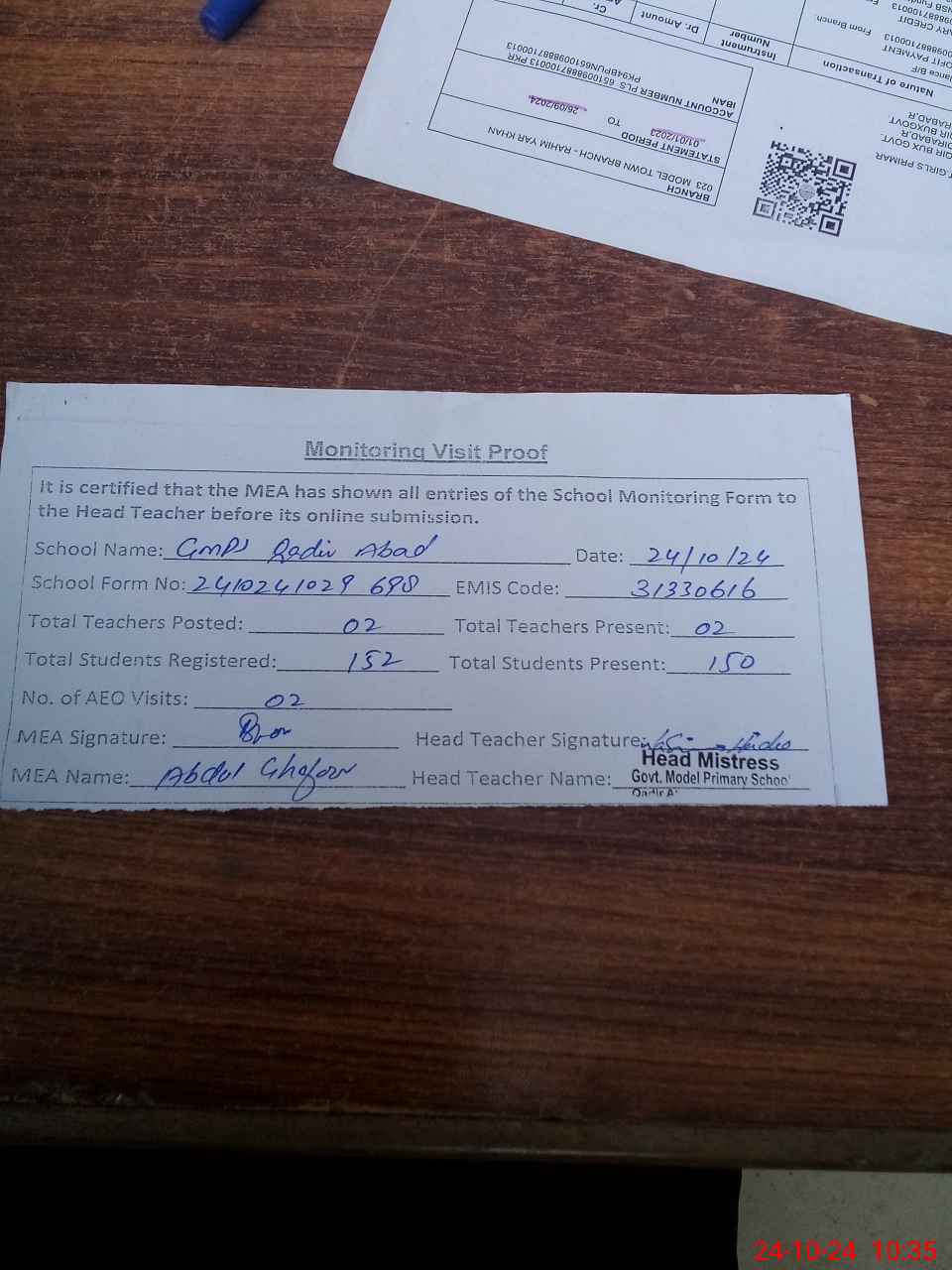 | EMIS Code: 31330616 | Name of School: GMPS QADIR ABAD BASTI | |||