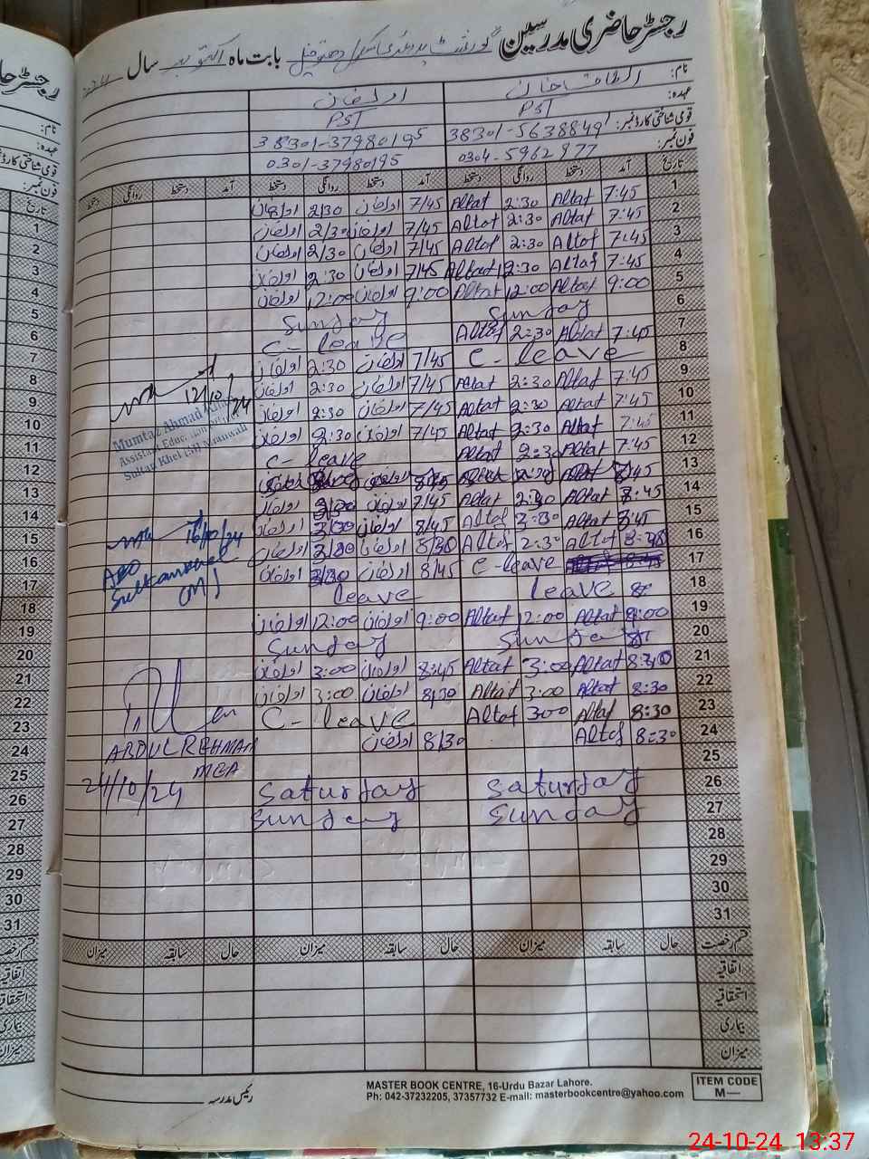 | Name: Al**** Kh**** Designation: (School Headmaster's/Headmistress's) PST Phone/Cell Number: 03**** |